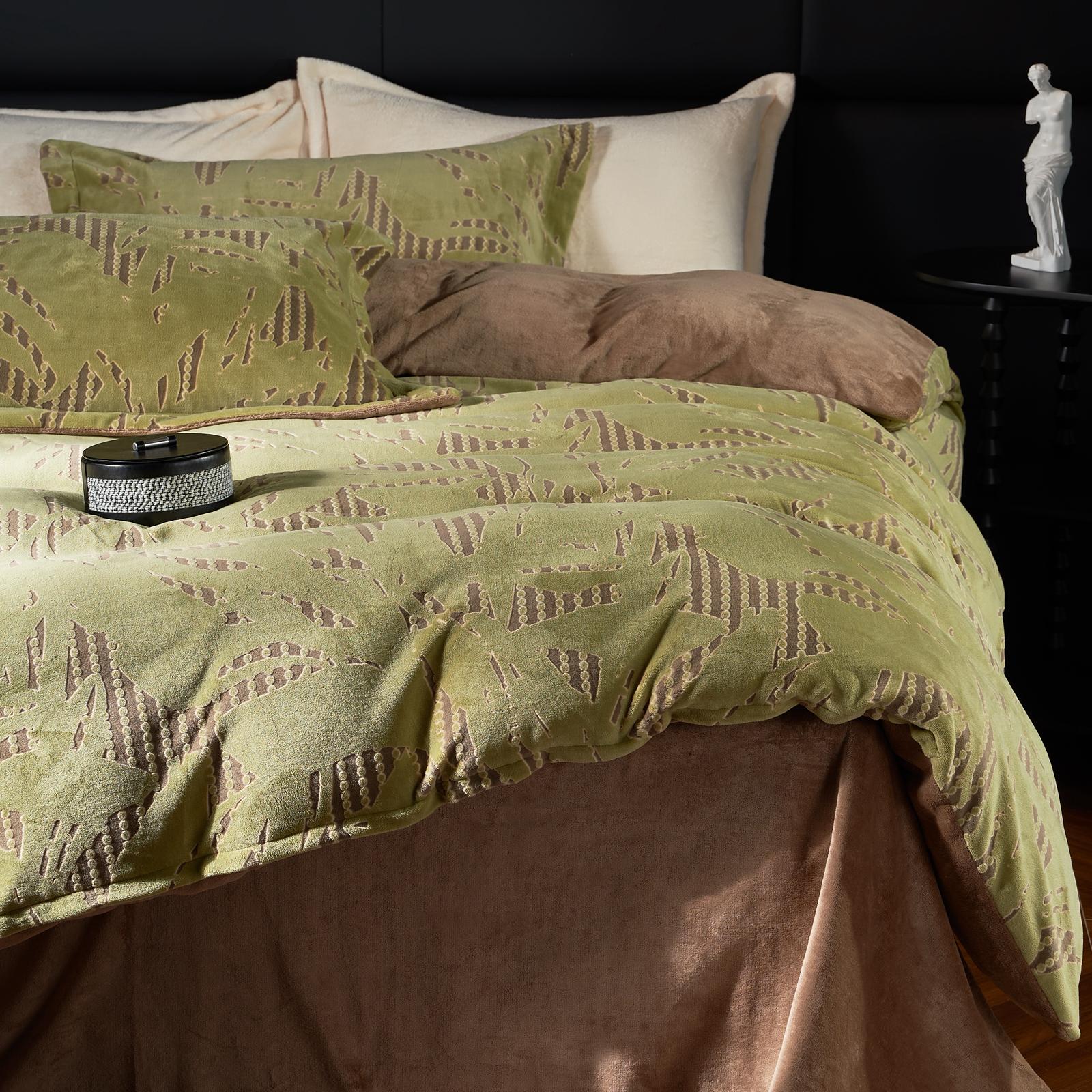 Lenjerie de pat 4 piese Cocolino model Flori - verde, realizată din microfibră plușată, moale și călduroasă, ideală pentru nopțile reci de iarnă. Modelul floral în relief 3D adaugă un efect elegant și modern, transformând dormitorul într-un spațiu primitor.
