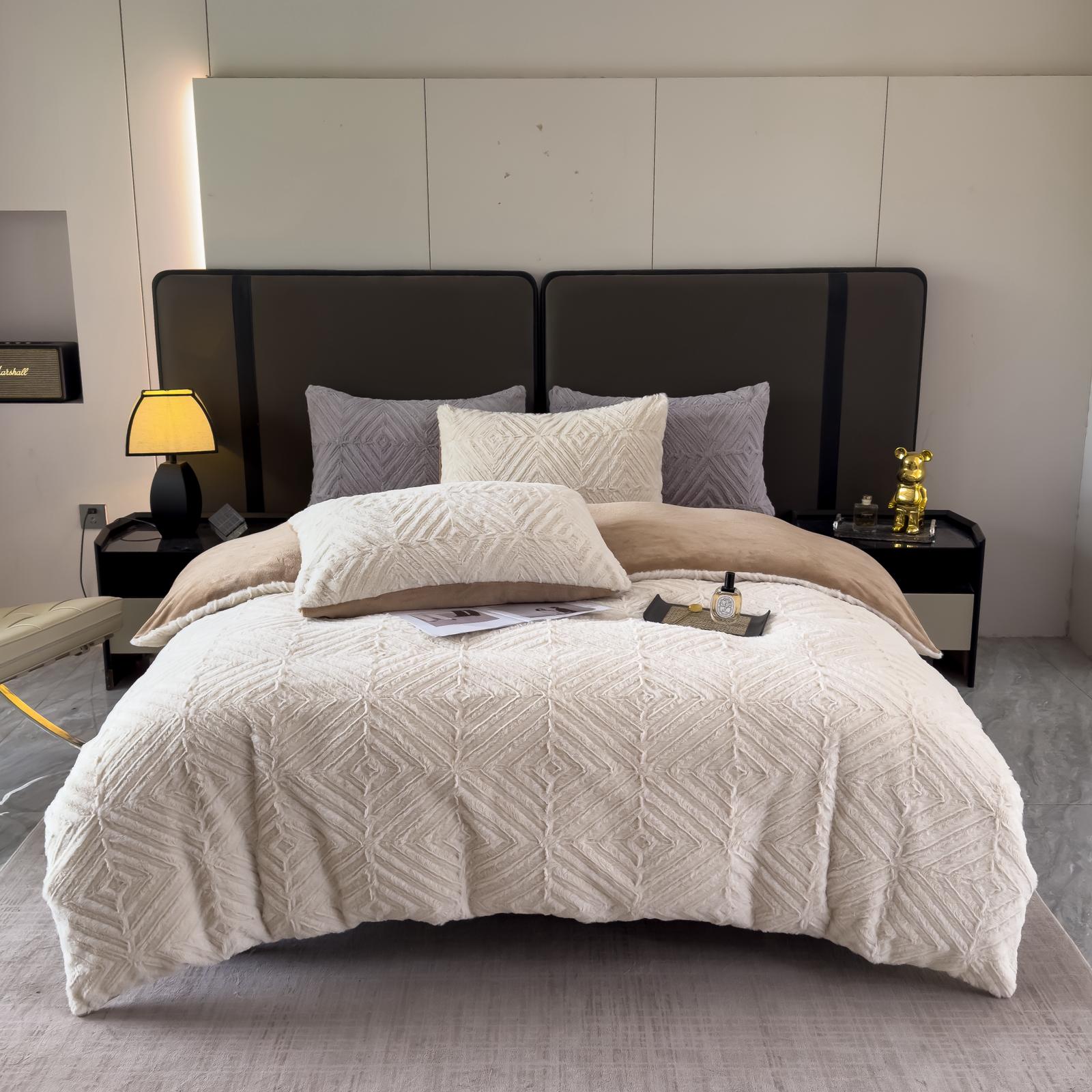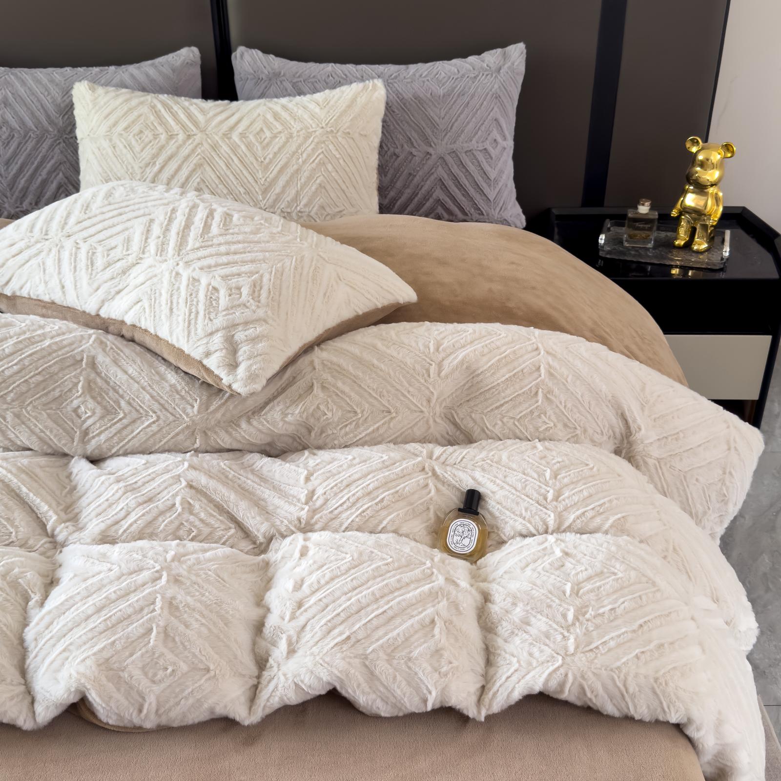 Lenjerie de pat 4 piese Cocolino Spic alb – LCS03A, din microfibră plușată, moale și călduroasă.