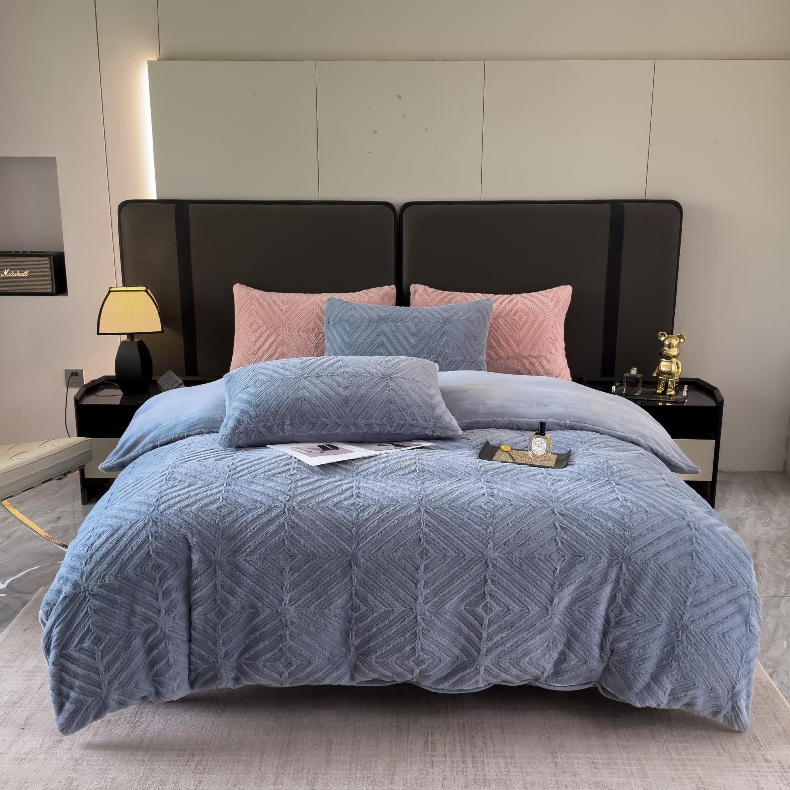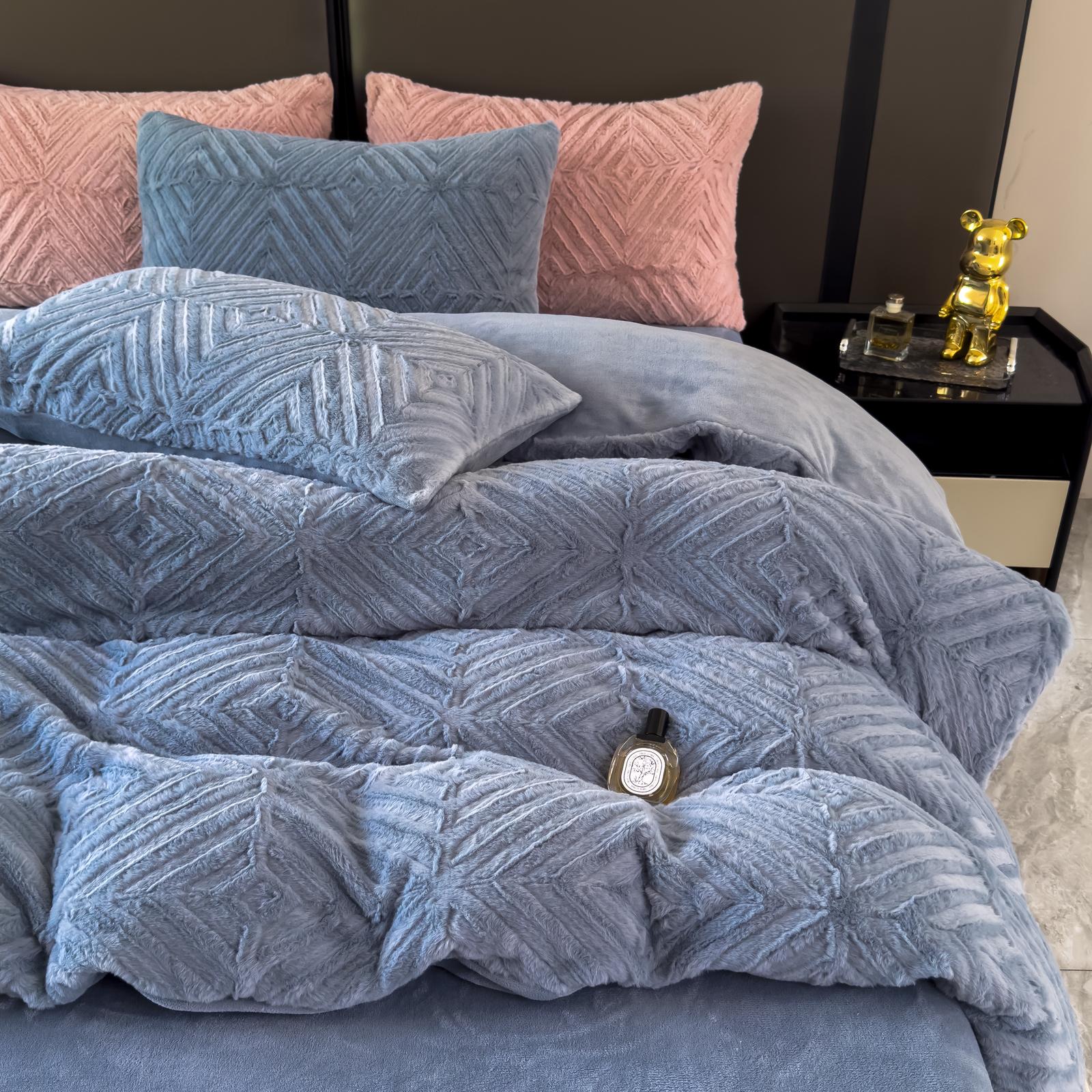 Lenjerie de pat 4 piese Cocolino Spic bleu – LCS01B, din microfibră plușată, moale și călduroasă.