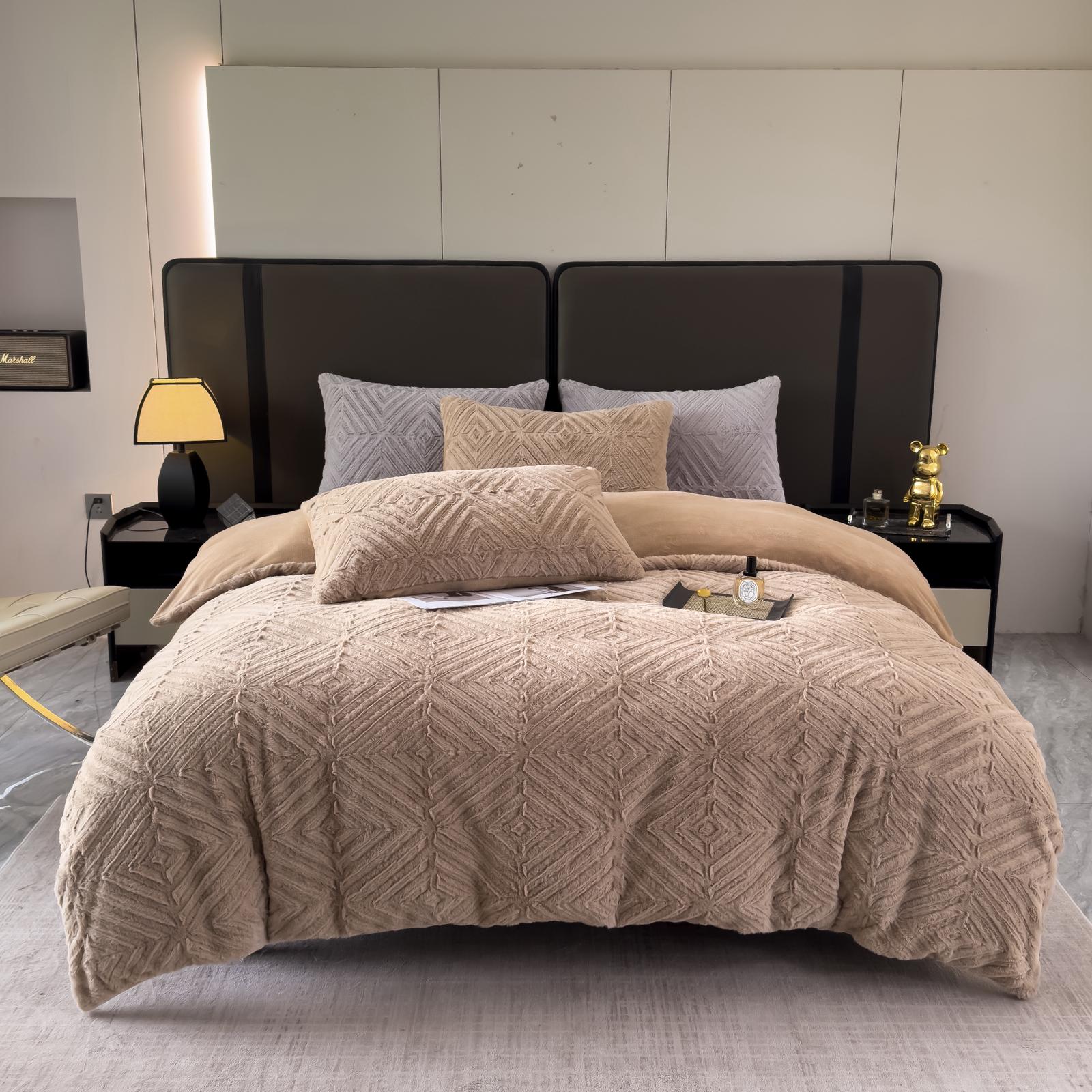 Lenjerie de pat 4 piese Cocolino Spic maro – LCS05M, din microfibră plușată, moale și călduroasă.