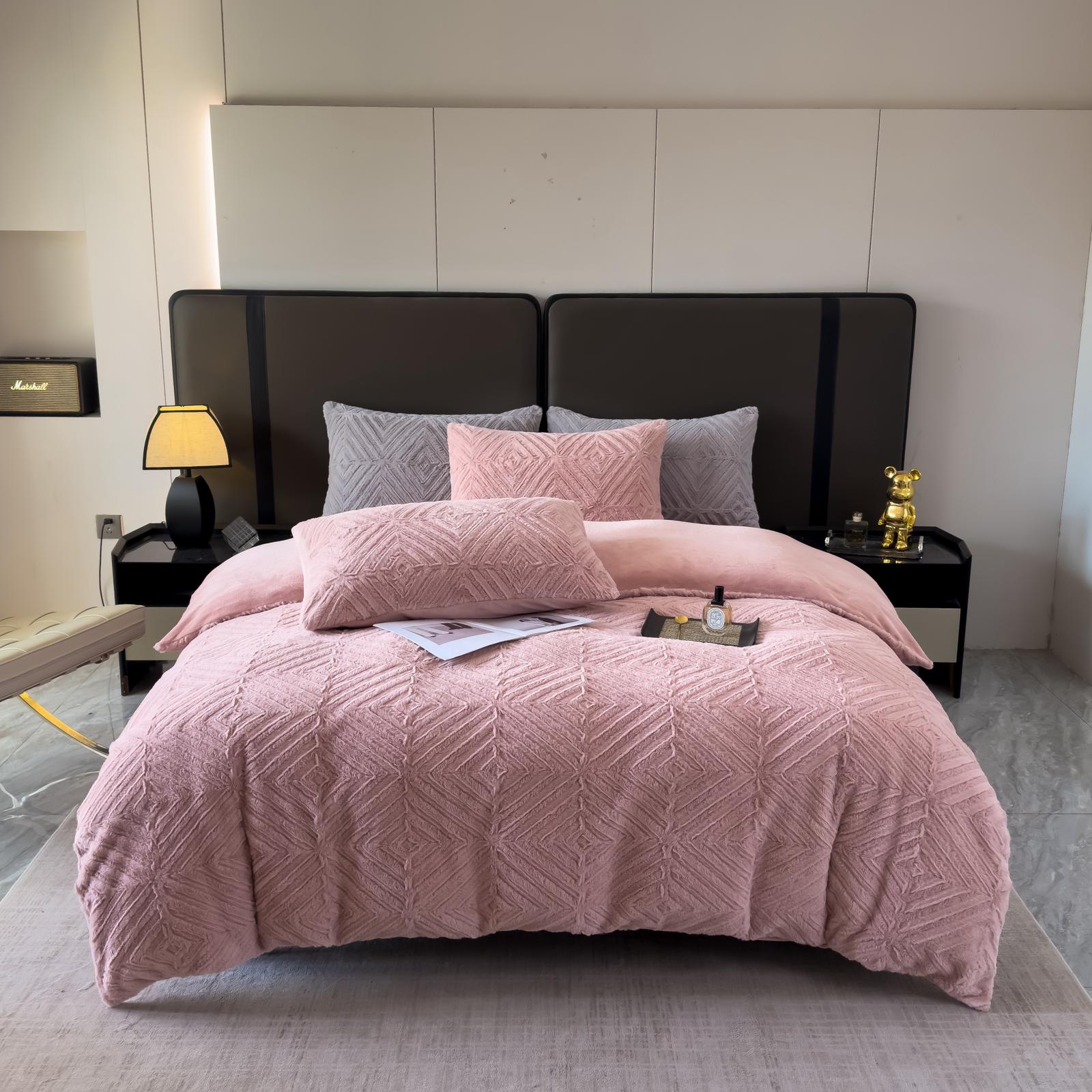 Lenjerie de pat 4 piese Cocolino Spic pink – LCS02P, din microfibră plușată, moale și călduroasă.