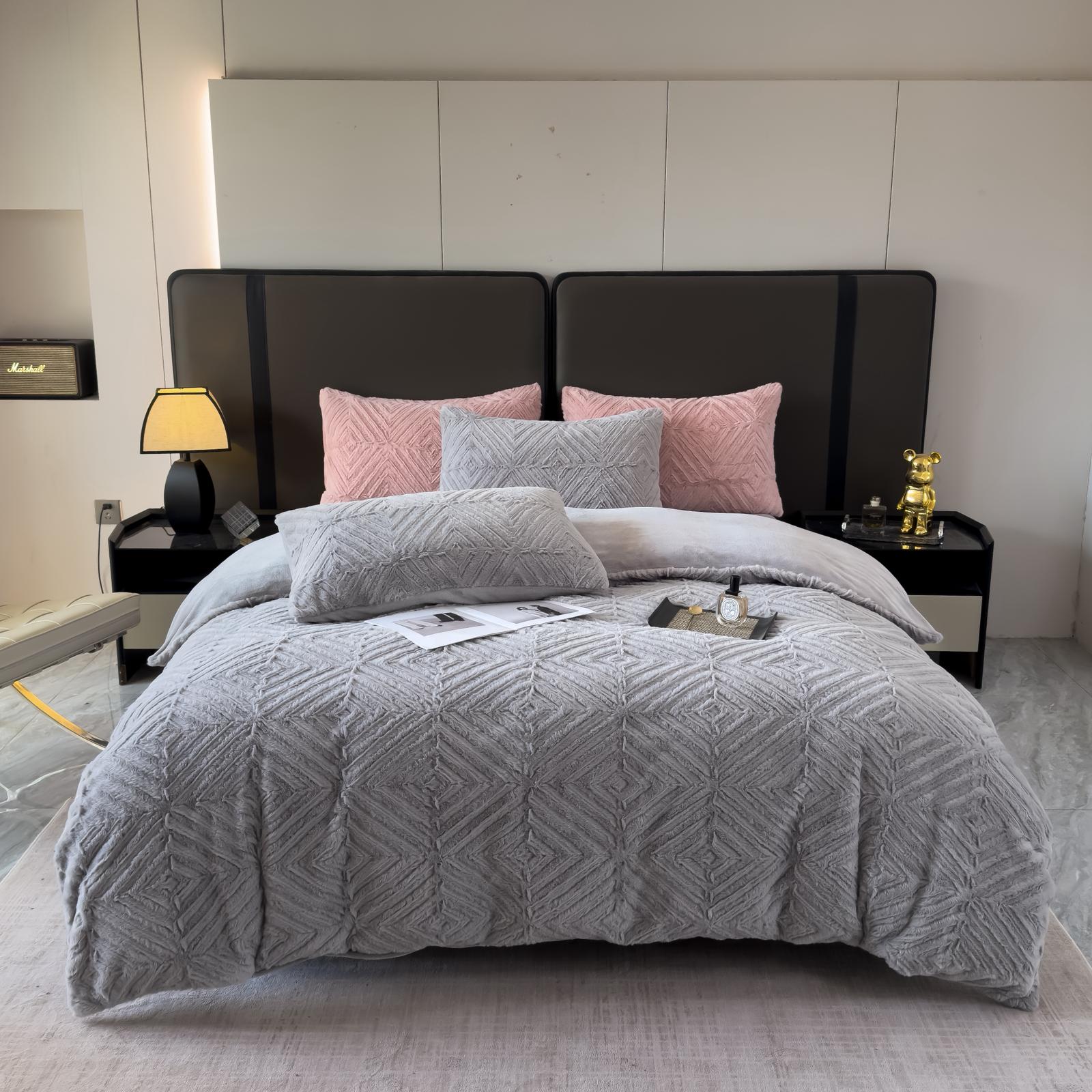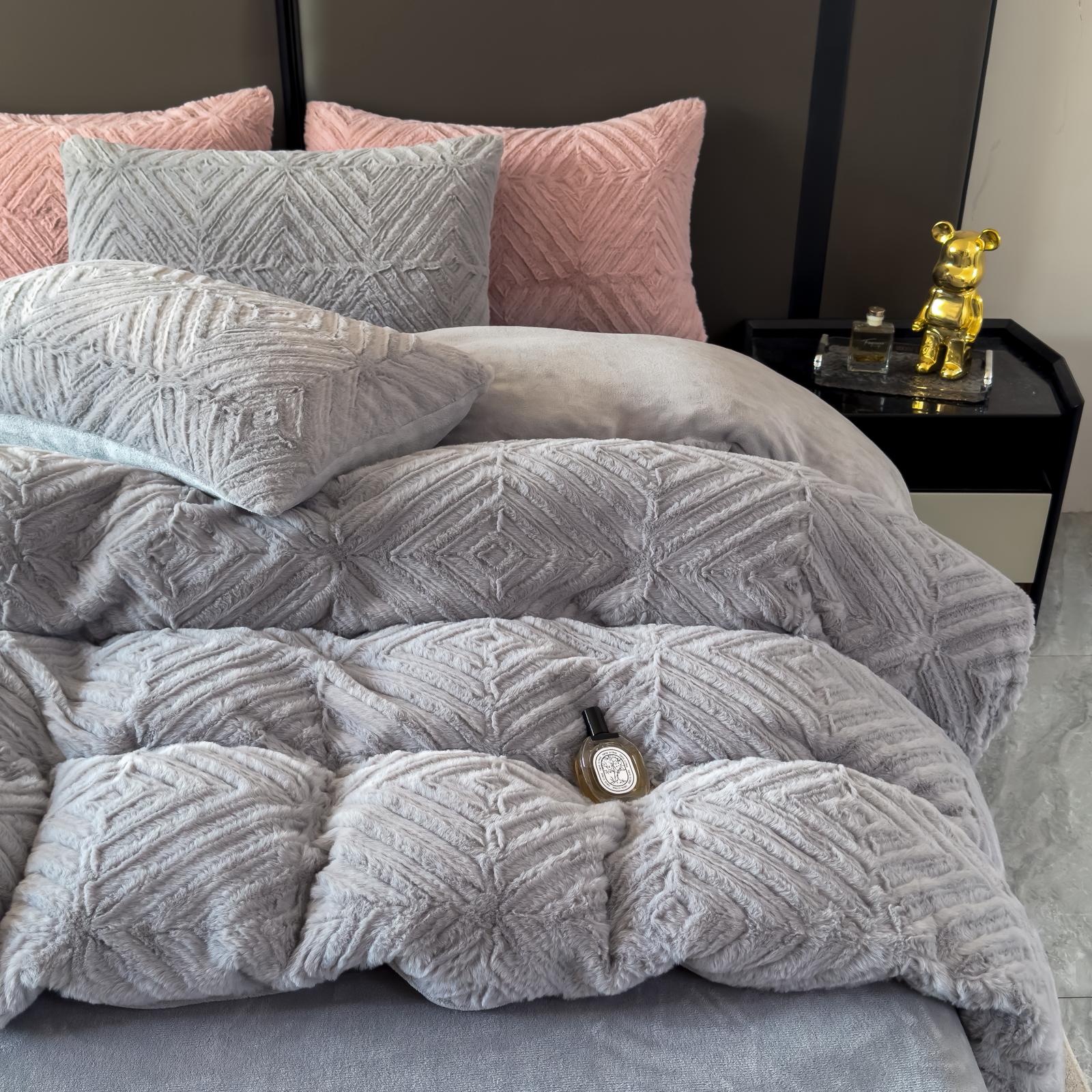 Lenjerie de pat 4 piese Cocolino Spic gri – LCS07G din microfibră plușată, moale și călduroasă.