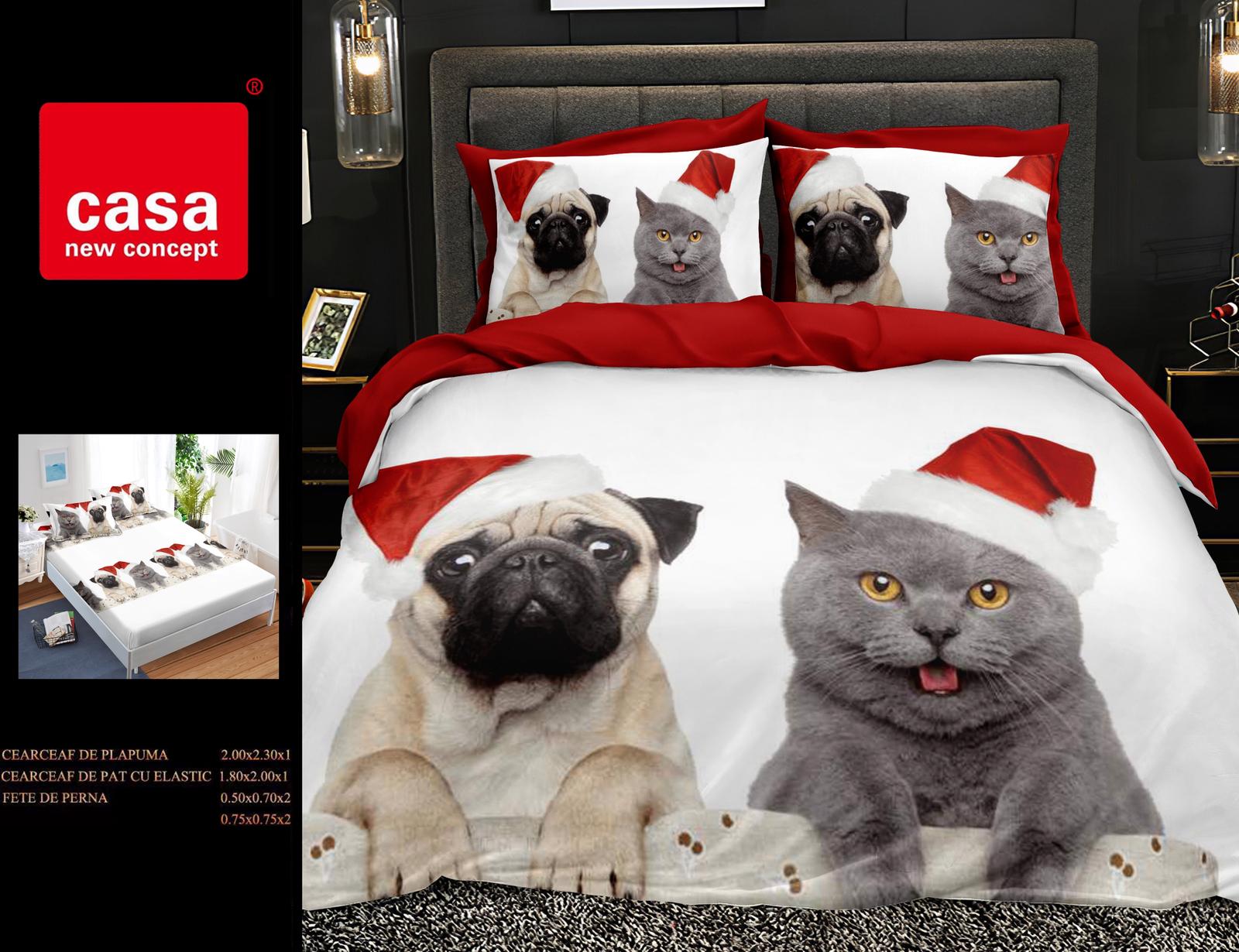Set complet de lenjerie de pat cu tematică de Crăciun, confecționat din bumbac finet moale și plăcut la atingere. Ideal pentru sezonul rece, oferă căldură, confort și un decor festiv în dormitor.