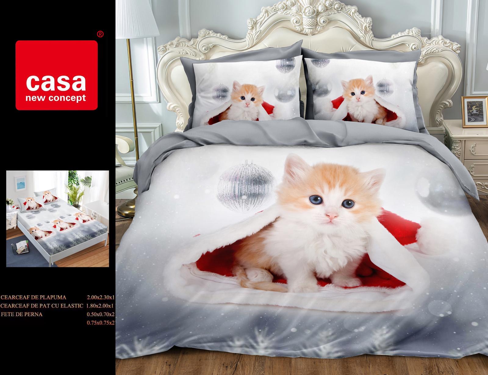 Set complet de lenjerie de pat cu tematică de Crăciun, confecționat din bumbac finet moale și plăcut la atingere. Ideal pentru sezonul rece, oferă căldură, confort și un decor festiv în dormitor.