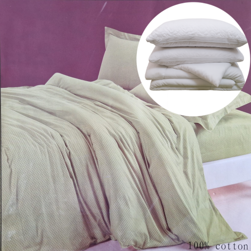 Set Complet: Lenjerie Bumbac Satinat + Pilotă cu 2 Perne, SM-2